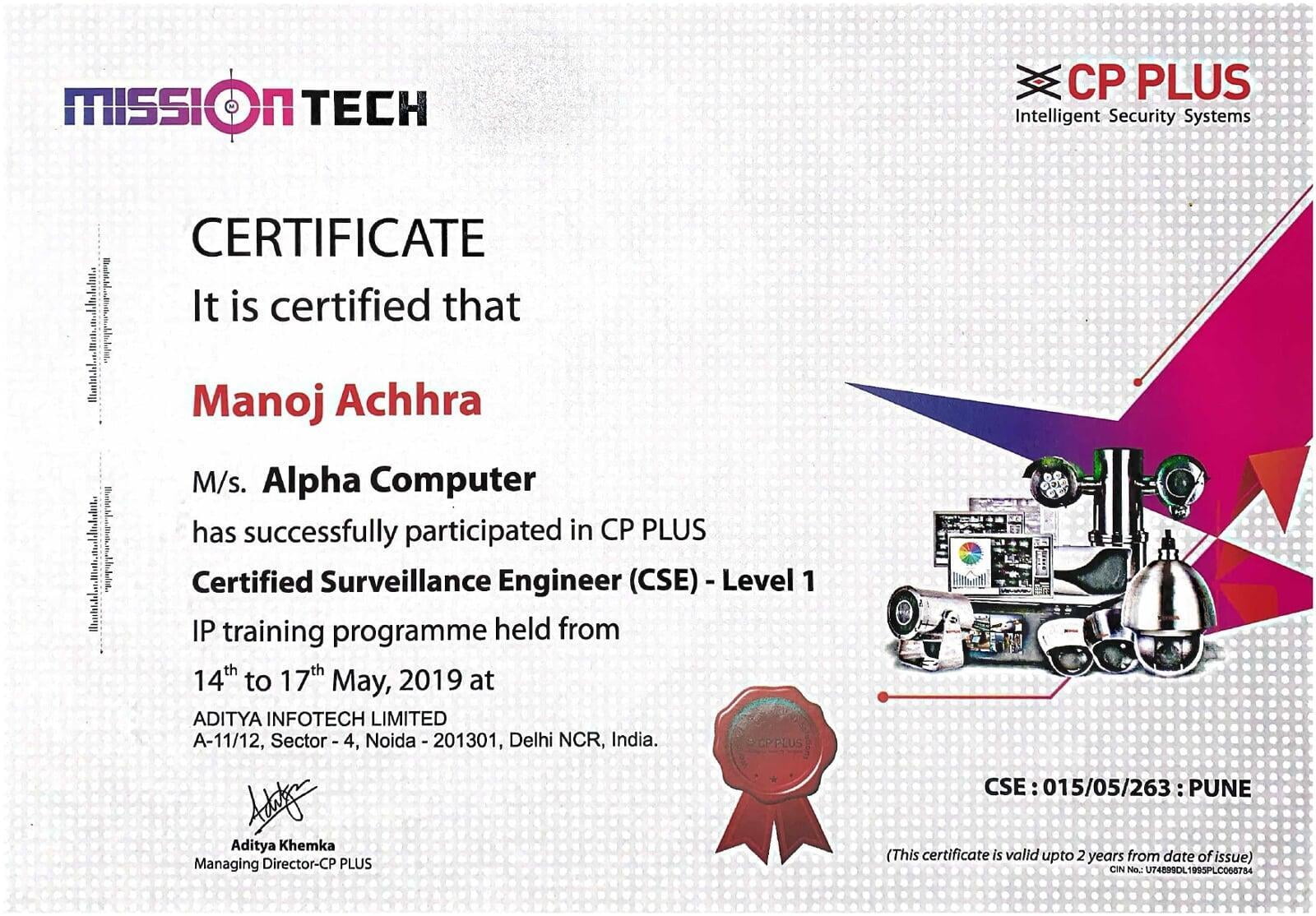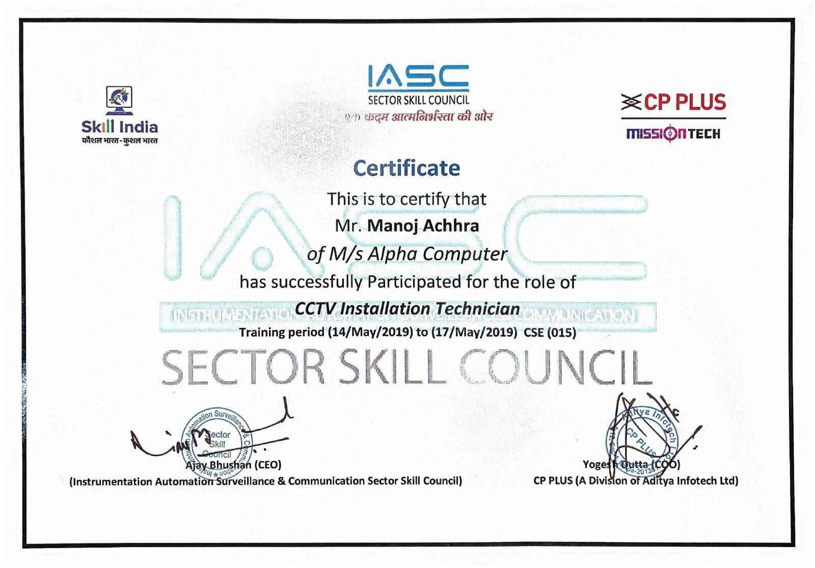 Mr. Manoj Achhra of Alpha Computers was certified by Skill India to conduct CCTV training. This was done in partnership with CP Plus, a leading provider of CCTV solutions. This training was designed to educate participants on the basics of installing and maintaining CCTV systems. The training program covered topics such as basic installation, networking and management of cameras, how to configure the cameras to best suit the user’s needs, and how to use the latest features of the software. Participants were also taught about the importance of maintaining the cameras regularly to ensure that they are working properly and providing optimal security. Additionally, participants were also taught about the different types of cameras available in the market, and the best practices to follow when installing them. The training program was a great success and the participants were highly satisfied with the information they had been provided. Mr. Achhra was praised for his in-depth knowledge and expertise in the subject matter. He was able to answer all the questions posed to him and provided the participants with valuable insights. The participants were also given hands-on experience in the installation and maintenance of the cameras. This gave them the necessary confidence to work with the cameras on their own. The participants were also given the opportunity