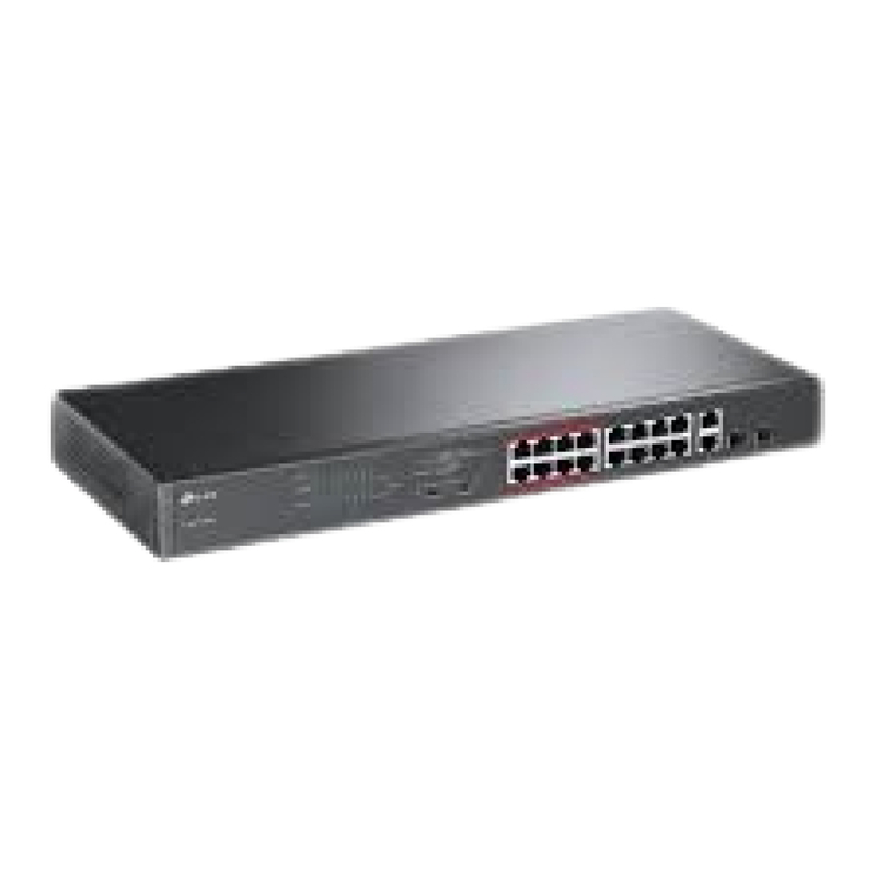 - 16 PoE+ 10/100Mbps RJ45 ports, 2 Gigabit RJ45 ports and 2 combo Gigabit SFP slots