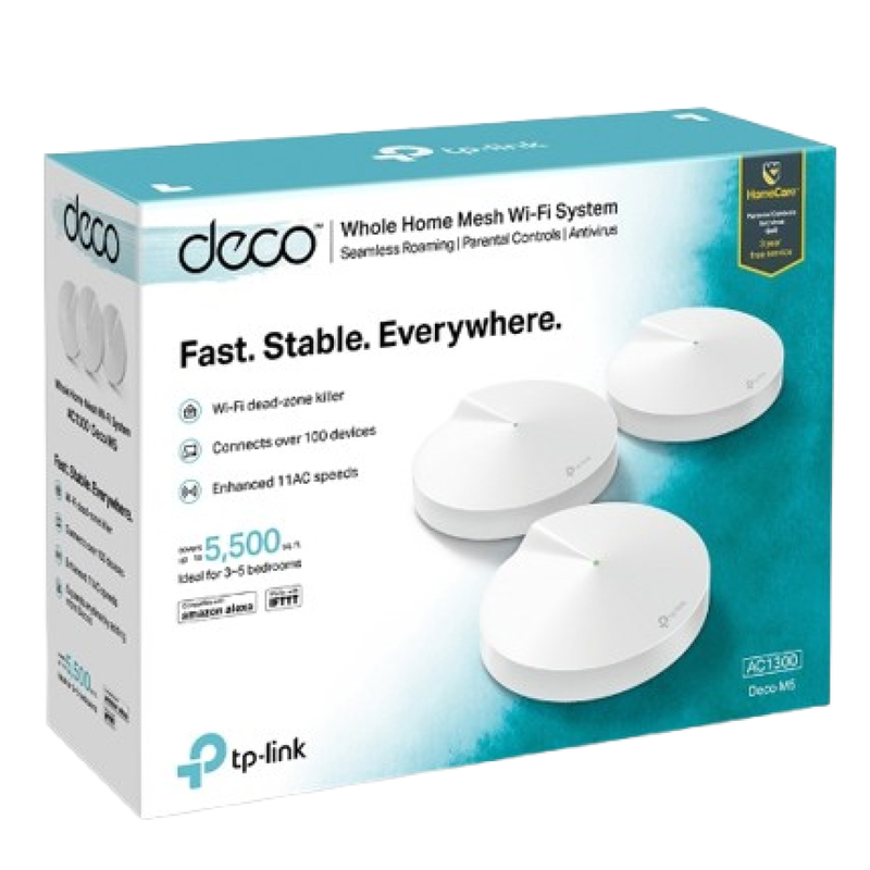 - Deco M5 provides fast and stable connections with speeds of up to 1267Mbps and works with any internet service provider (ISP) and modem.